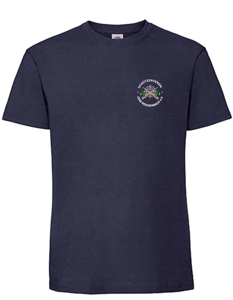 Herren T-Shirt mit Logo auf der Brust (Rücken optional) – klassisches Basic Shirt in herausragender Qualität. Mit 195 g/m² (Weiß 190 g/m²) bietet das Shirt einen angenehm, kräftigen Griff. Es ist in den Farben Weiß, Grün, Navy und in den Größen S bis 5XL erhältlich.