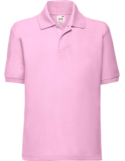 Kinder Polo-Shirt – 65/35 Piqué der Marke Fruit of the Loom. 3-fach geknöpft, Regular (normal geschnitten) mit 180 g/m² bietet es einen angenehmen Tragekomfort. Erhältlich in den Farbtöne, Weiß, Dunkelgrün Blau Pink.